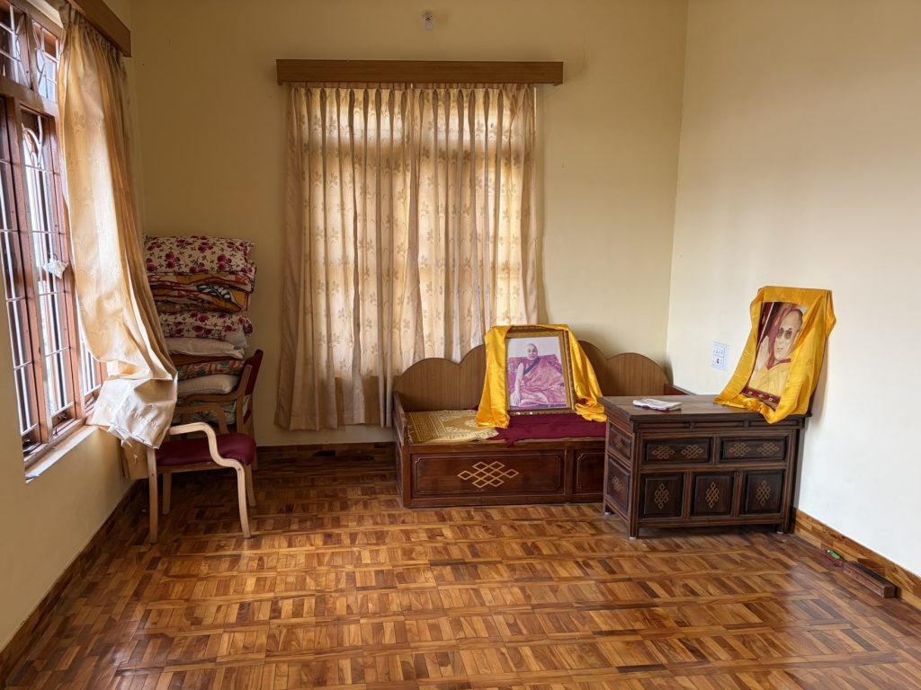 After lunch we were given a tour of the temple and were shown the special quarters reserved for His Holiness the Dalai Lama if he came to stay, and also the room reserved for Geshe Loden when he came to stay, recognising the kindness of Geshe Loden’s support of his khangsten. It was quite moving to see this all firsthand – the reverence and respect with which Geshe Loden is held – and to meet others who had benefited from Geshe Loden’s kindness.