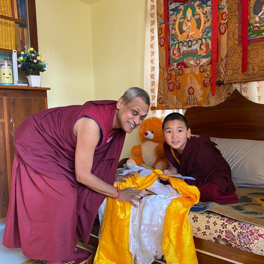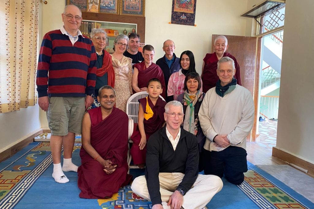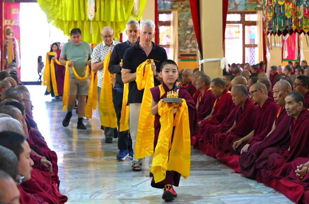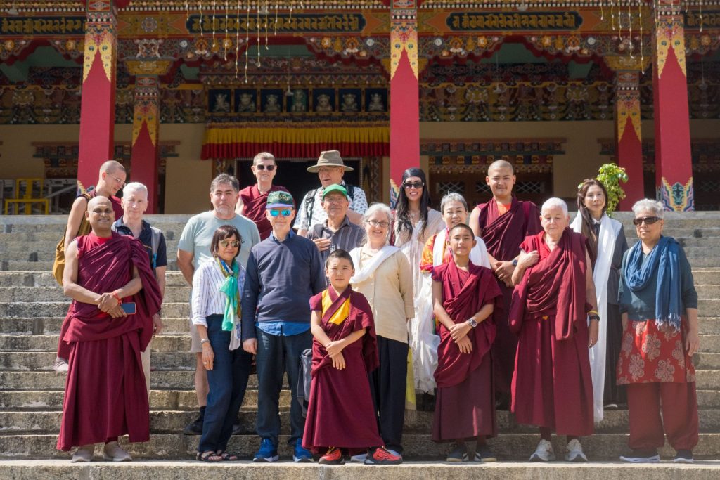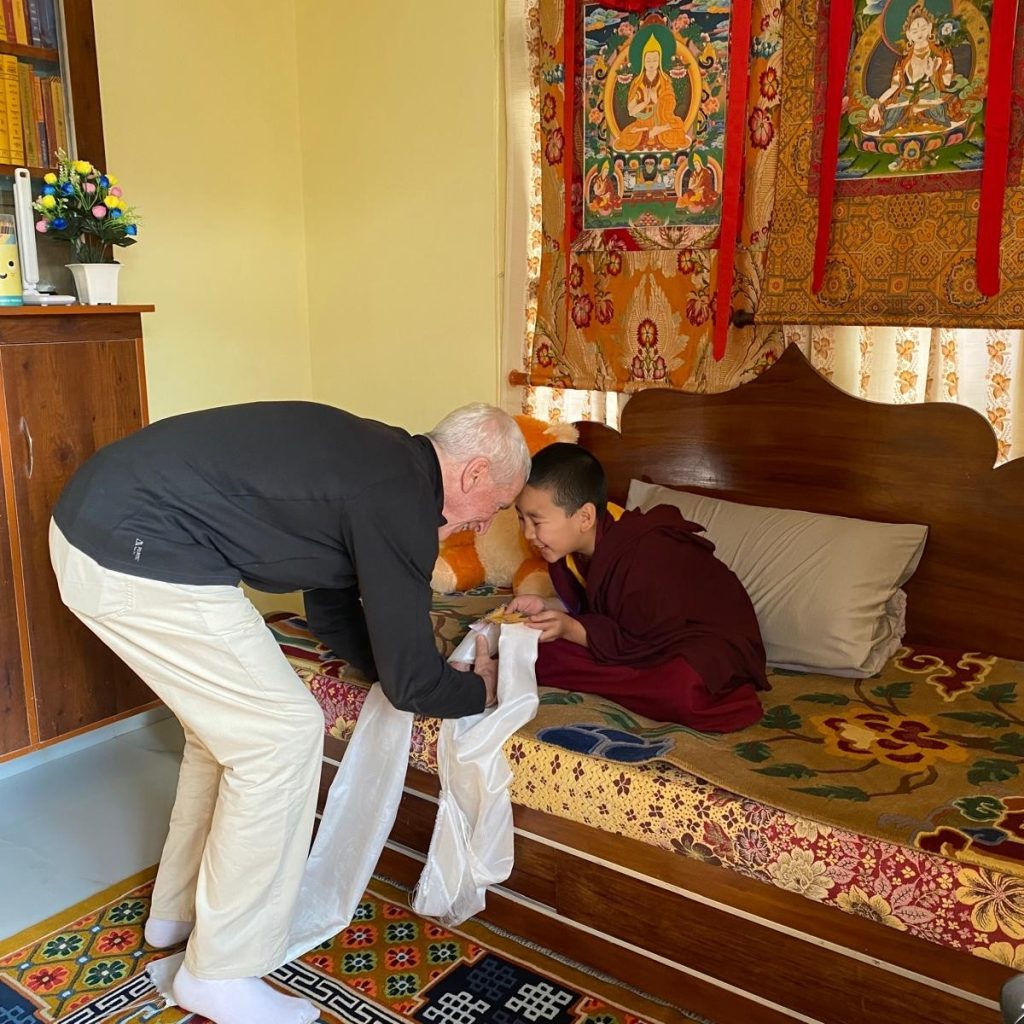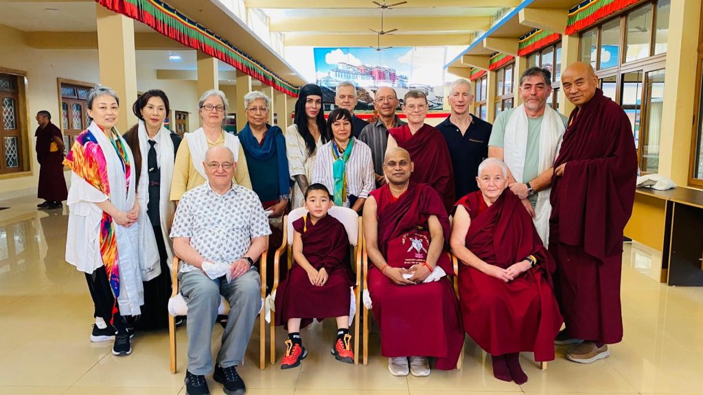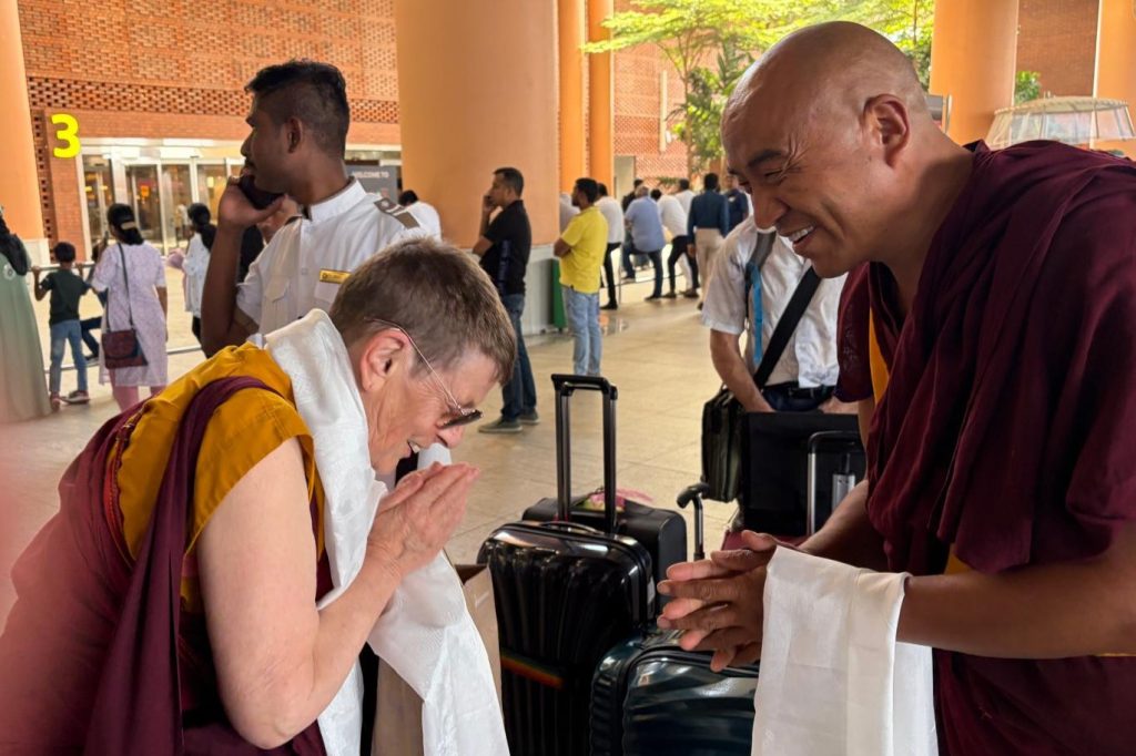 Below: TBS students make offerings to Loden Rinpoche after arriving at Loden Labrang (Loden Rinpoche’s residence), Ven Anna greeting Geshe Penpa (Loden Rinpoche’s kind teacher) earlier in the day