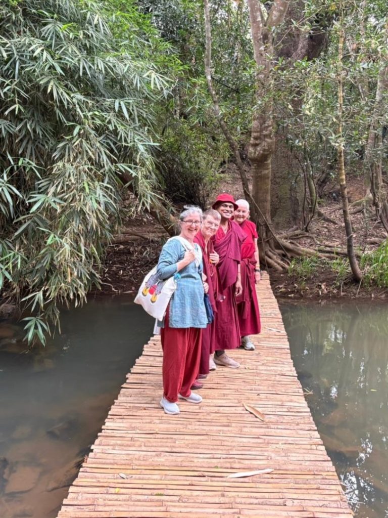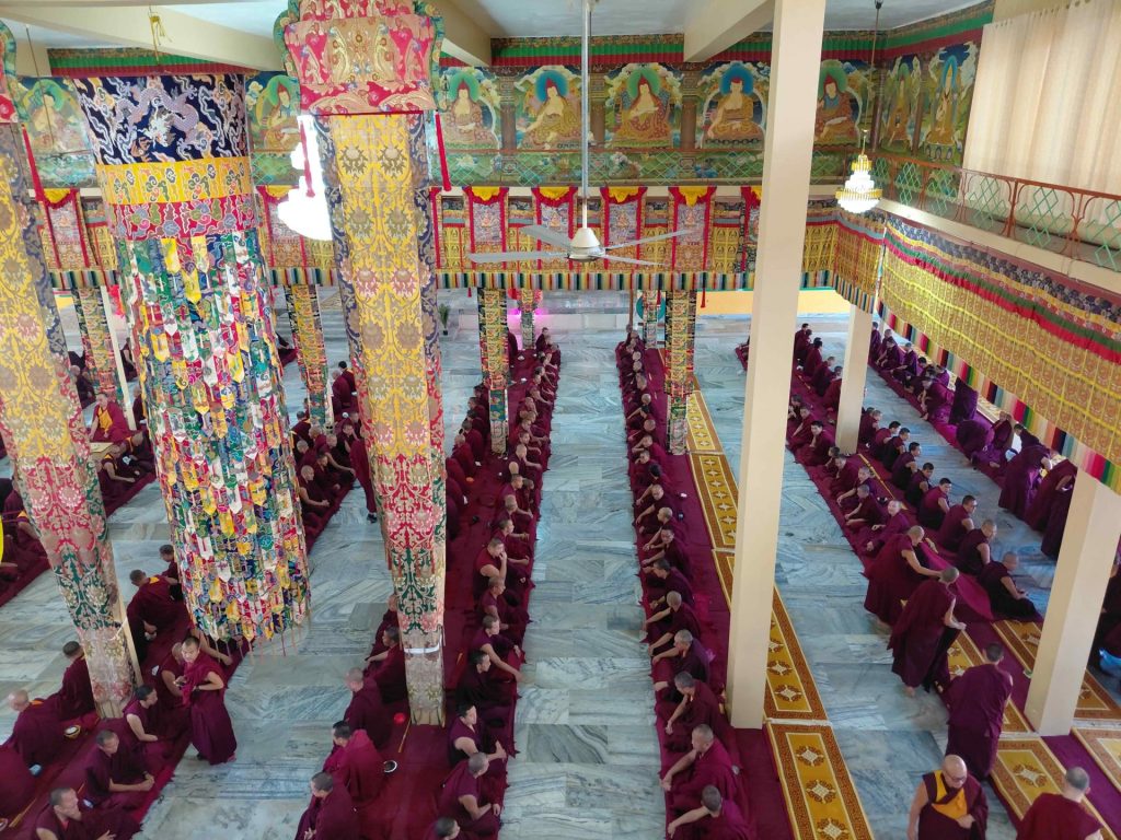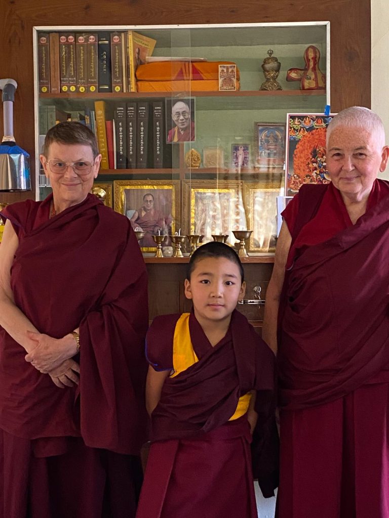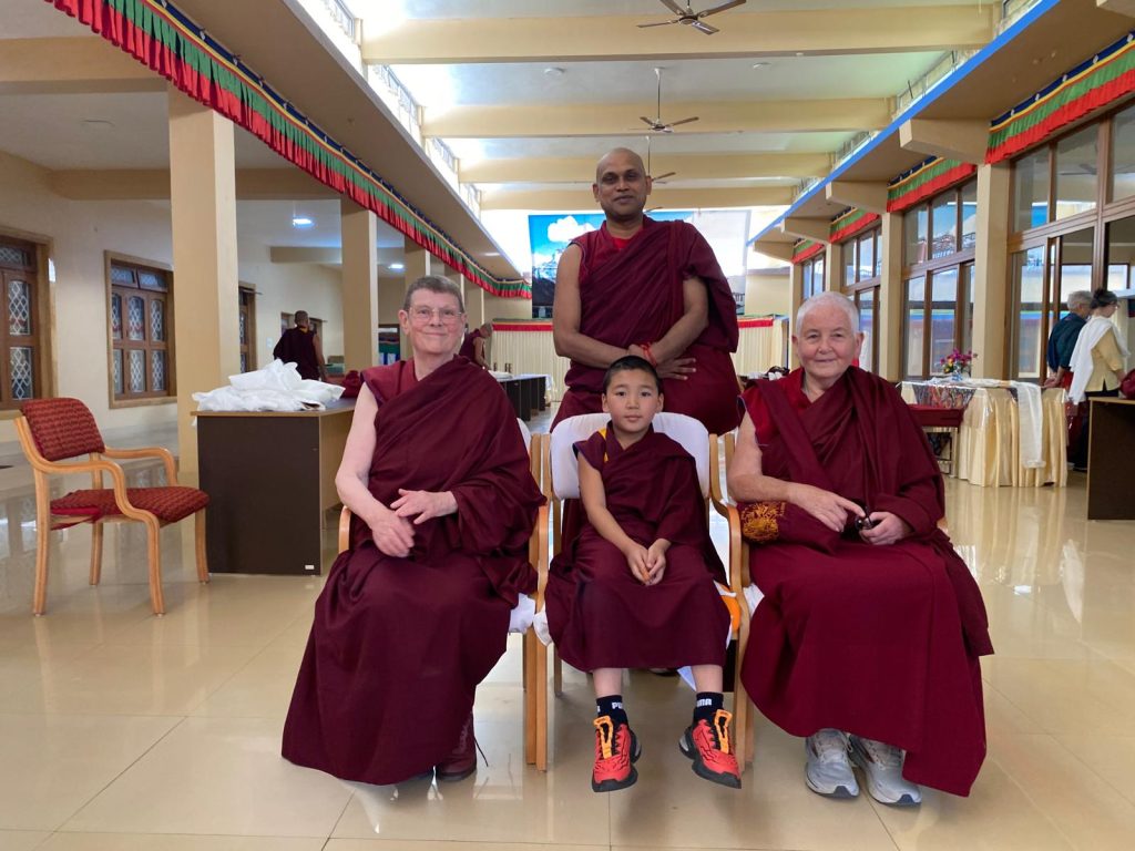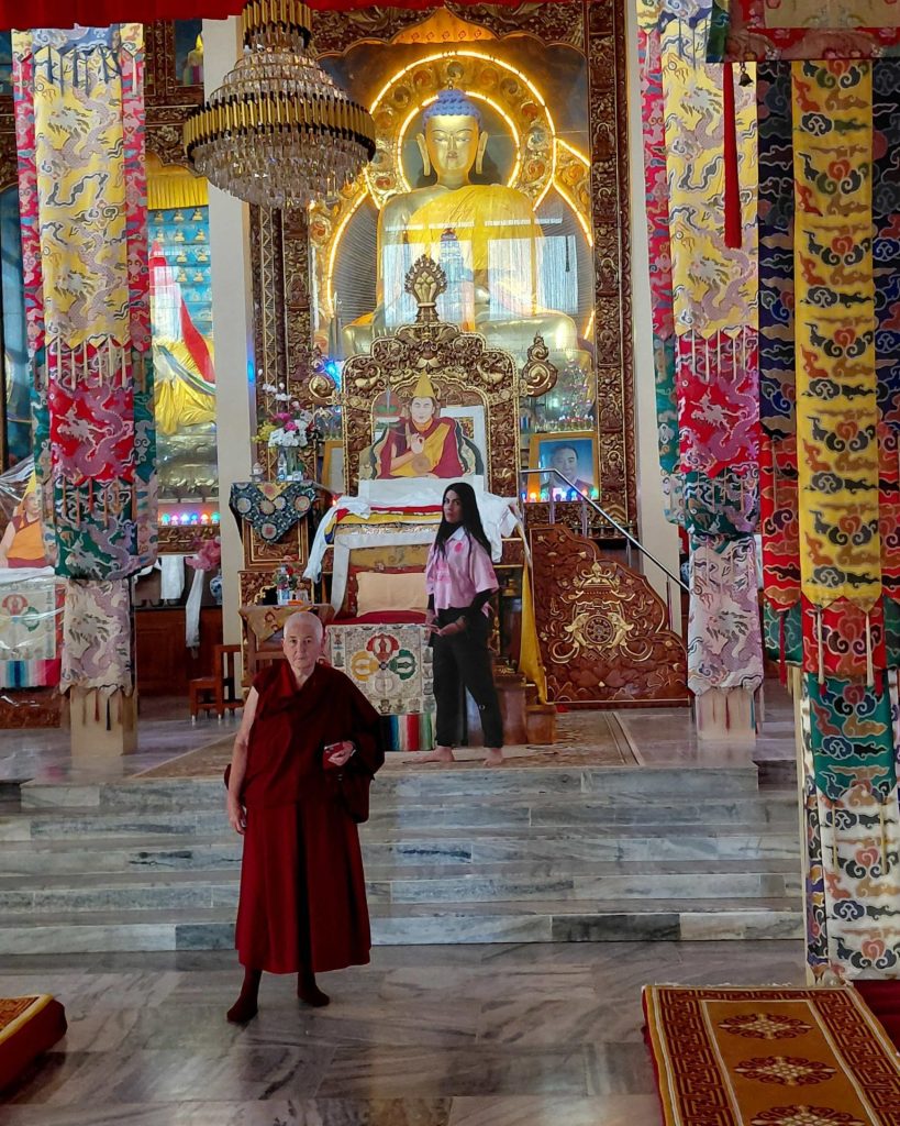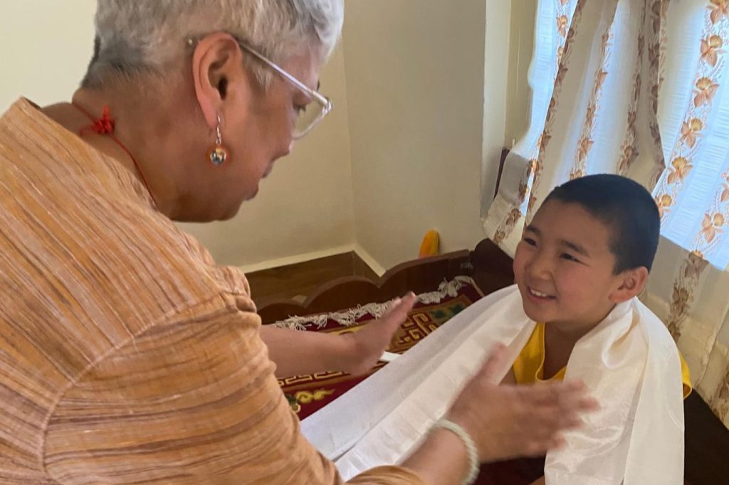 Below: TBS students make offerings to Loden Rinpoche after arriving at Loden Labrang (Loden Rinpoche’s residence), Ven Anna greeting Geshe Penpa (Loden Rinpoche’s kind teacher) earlier in the day