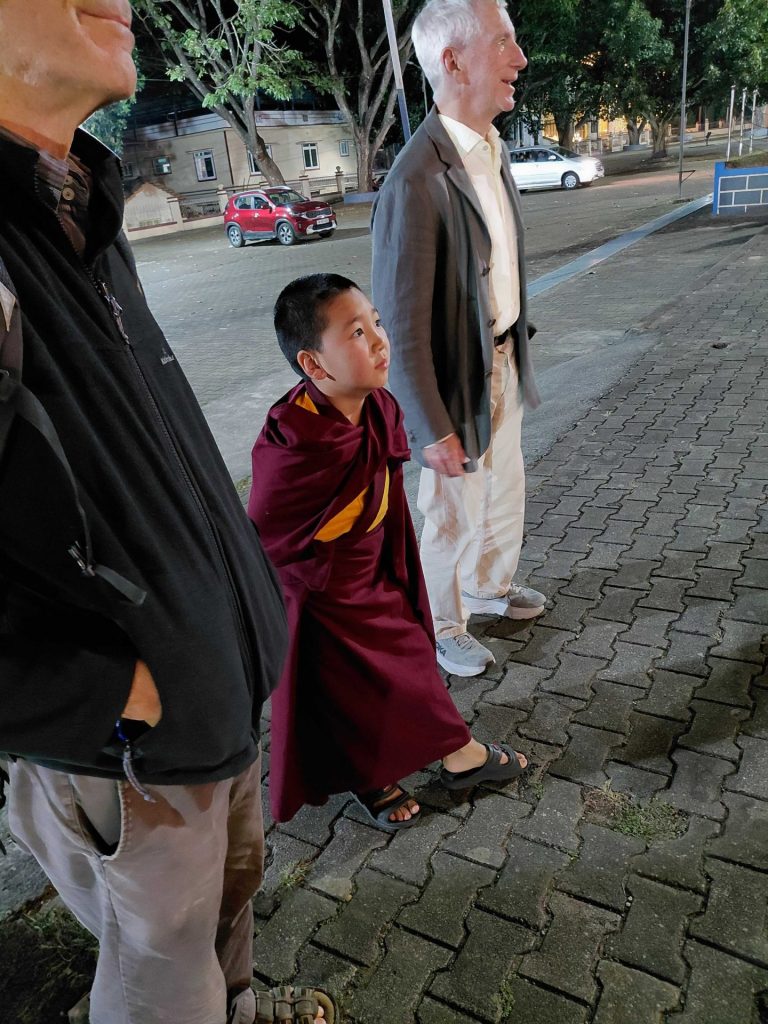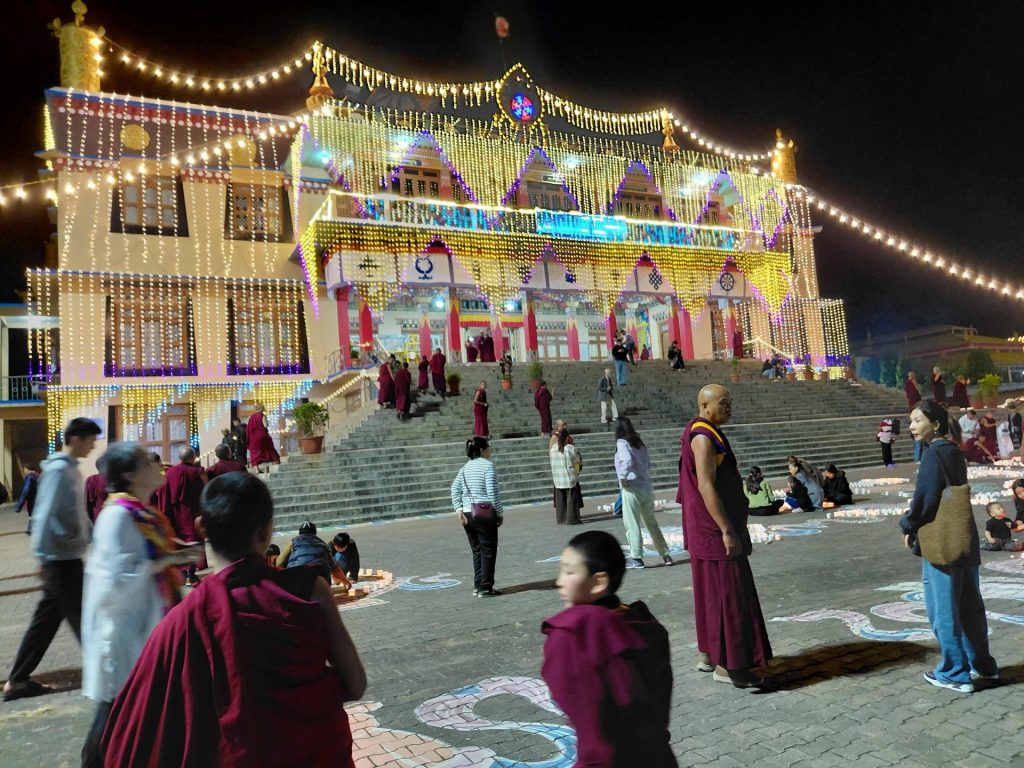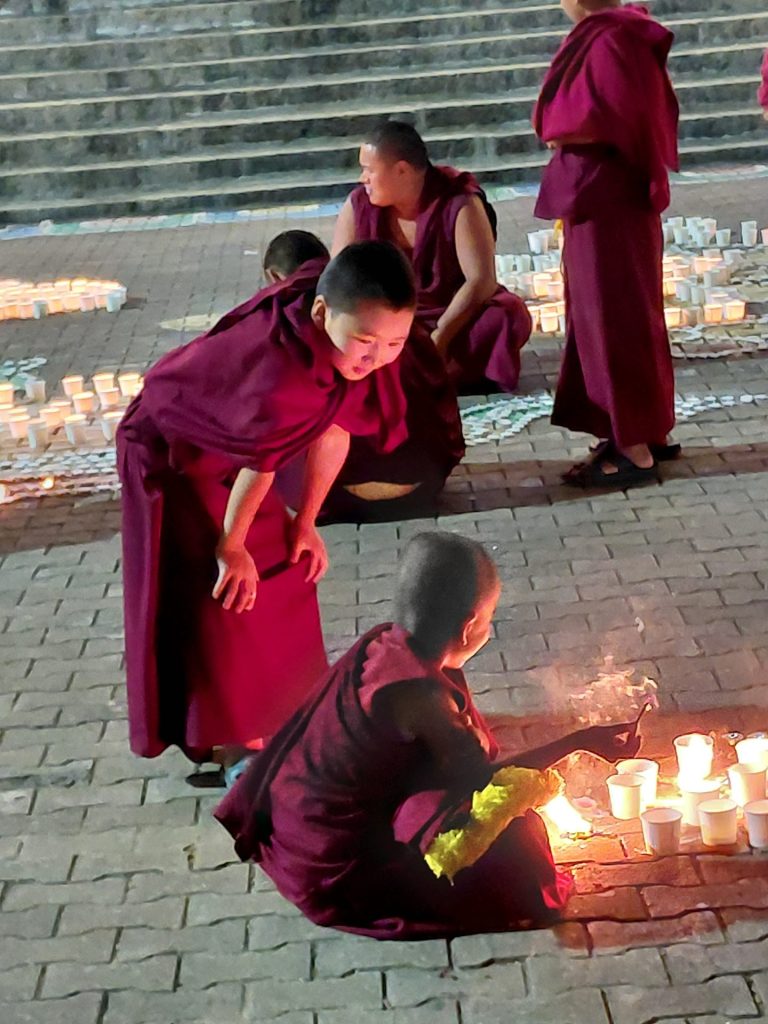 Below: Admiring the celebratory and offering lights on the grounds outside Sera-Jey on Tsong Kharpa Day